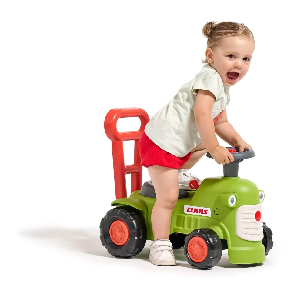 Un petit tracteur Claas tout mignon et plein d’astuces qui accompagne votre enfant dès 12 mois jusqu’à ses premiers pas grâce à sa barre d’aide à la marche. Il est également une formidable source d’éveil avec ses jolies couleurs, sa petite clé sonore et son volant directionnel avec klaxon pour développer sa motricité fine et globale.
