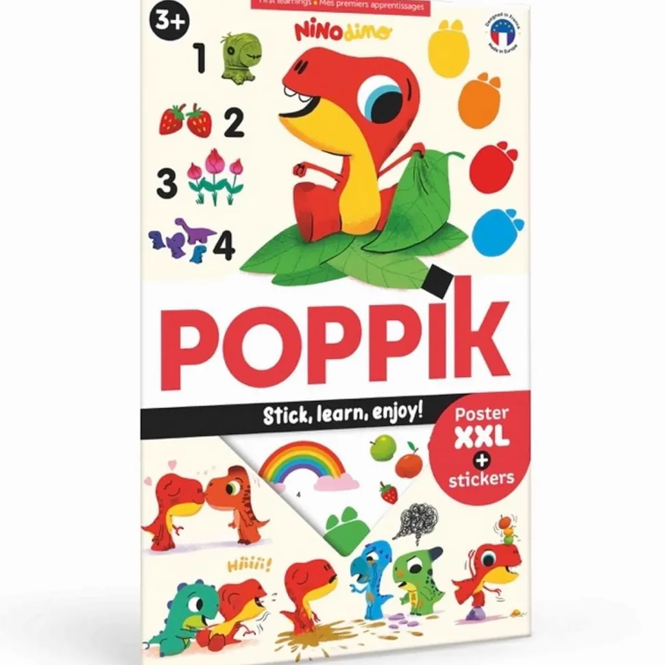 Avec ce grand poster, le célèbre dinosaure Nino Dino nous présente les grands apprentissages de la maternelle : les couleurs et les formes, les chiffres de 1 à 10, mais aussi les émotions, les cinq sens ou encore la météo. En collant les stickers repositionnables sur le grand poster, les enfants se concentrent et s’appliquent naturellement pour mieux mémoriser les savoirs. Les stickers se recollent et se décollent à l’infini pour permettre aux enfants de le faire à plusieurs, ou de le refaire tout seul, ou encore de faire des erreurs et d’arriver à les corriger par soi-même, afin de consolider au maximum leurs connaissances.