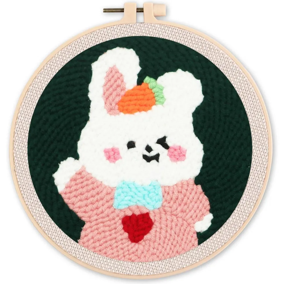 Description du produit : Punch Needle : Lapin Clin d’Oeil – avec cadre