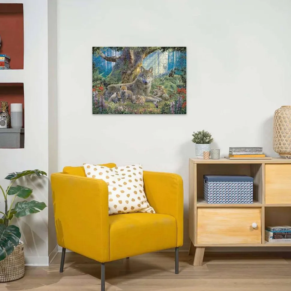 Description du produit : Puzzle 1000 pièces – Famille de loups dans la forêt