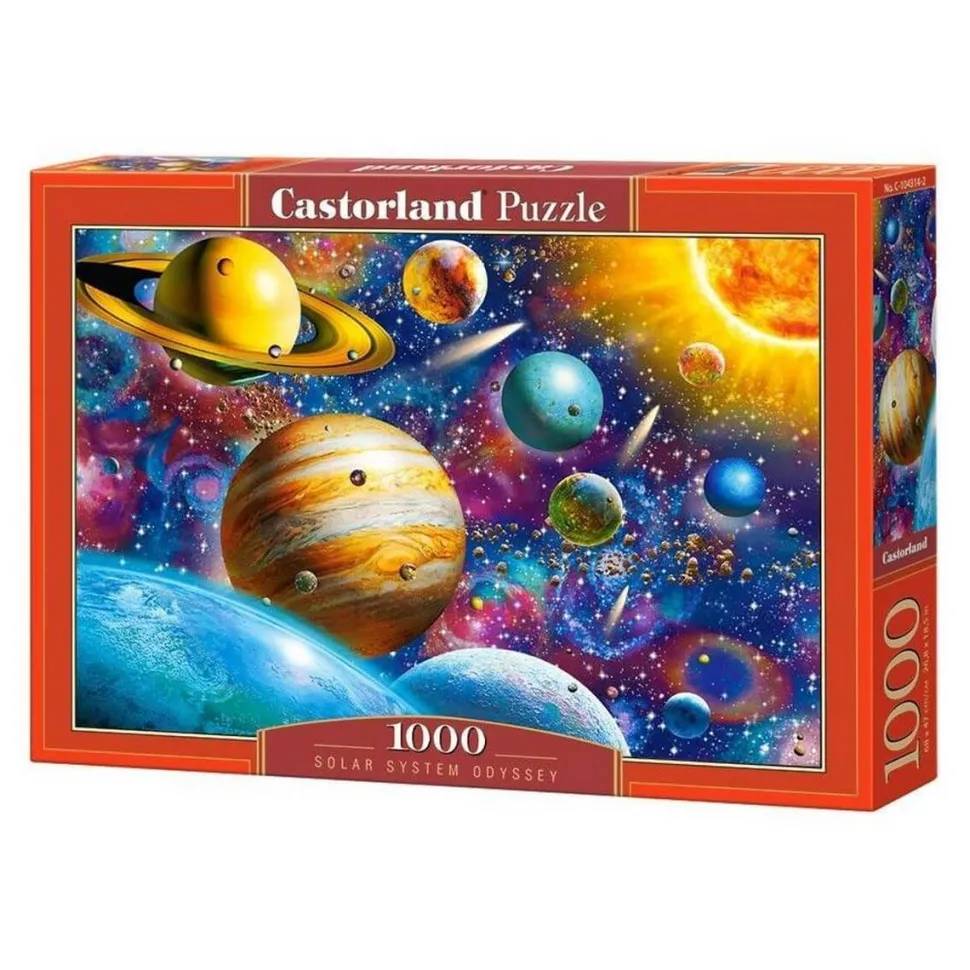 Le puzzle L’odyssée du Système Solaire de la marque Castorland est constitué de 1000 pièces. Il est donc d’une difficulté moyenne et est adapté aux personnes de plus de 12 ans.L’odyssée du Système Solaire est un puzzle représentant les différentes planètes du système solaire, mais pas seulement car la beauté de l’univers nous offre également une mer d’astéroïde, des étoiles flamboyantes et bien évidemment le soleil. Sa taille après réalisation est de 68 x 47 cm.Il est adapté à toute personne appréciant l’univers et ses composants. Il vous permettra de passer de bons moments en profitant de votre passetemps et en découvrant de nouveaux visuels.Vous pouvez retrouver sur notre site différents puzzles pouvant être associés au puzzle L’odyssée du Système Solaire.