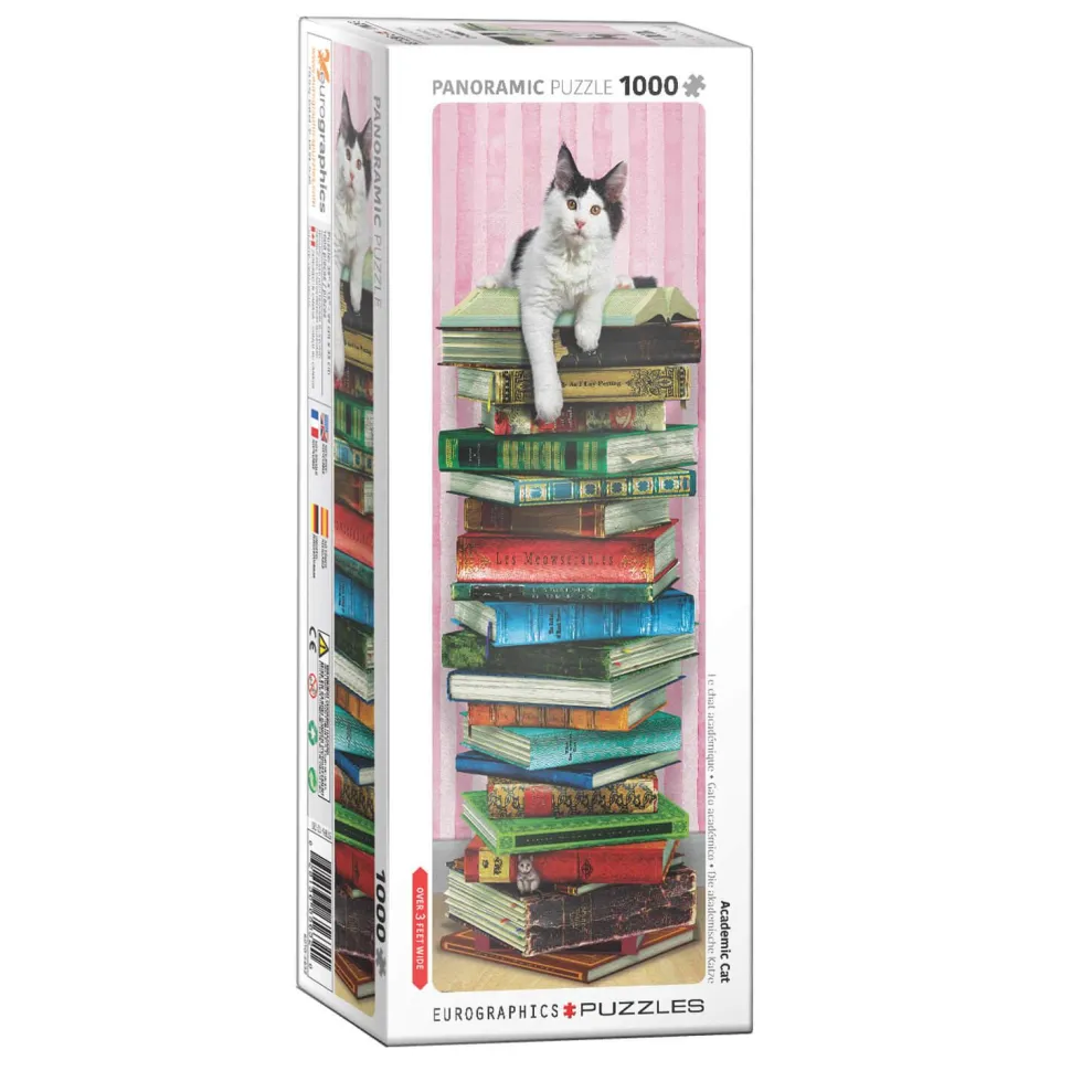 Description du produit : Puzzle 1000 pièces panoramique : Le chat académique