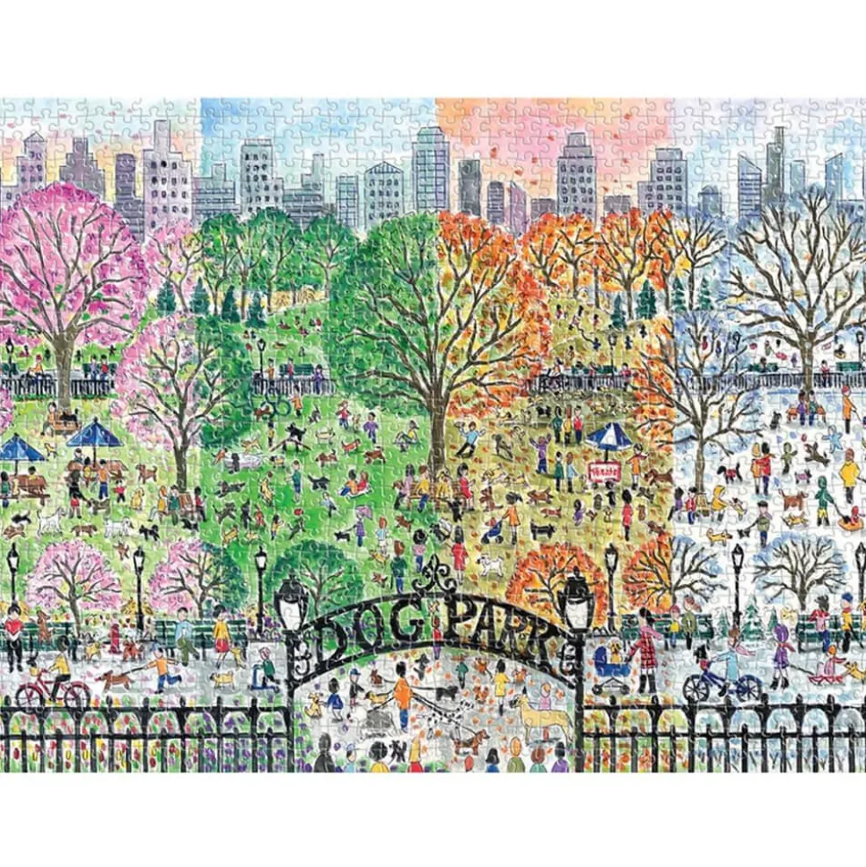 Description du produit : Puzzle 1000 pièces : Parc à chiens en quatre saisons, Michael Storrings