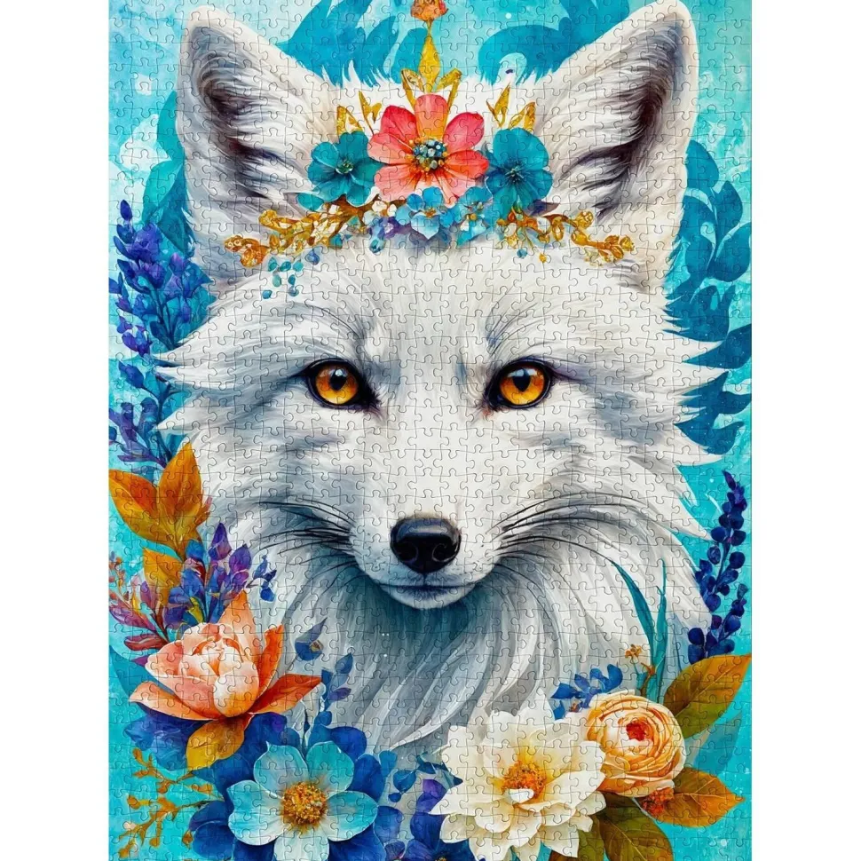 Description du produit : Puzzle 1000 pièces : Renard des neiges en fleurs