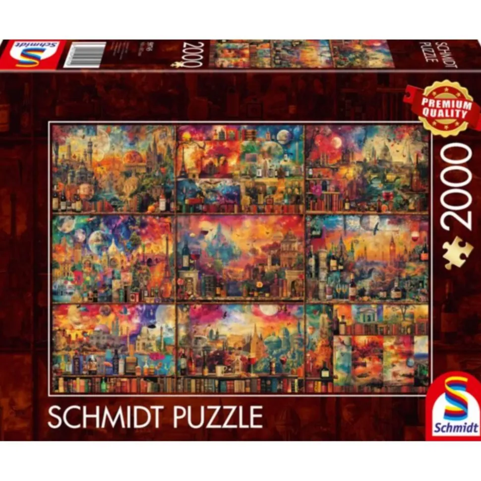 Description du produit : Puzzle 2000 pièces : Une pause de bon goût : livres, vins et voyages