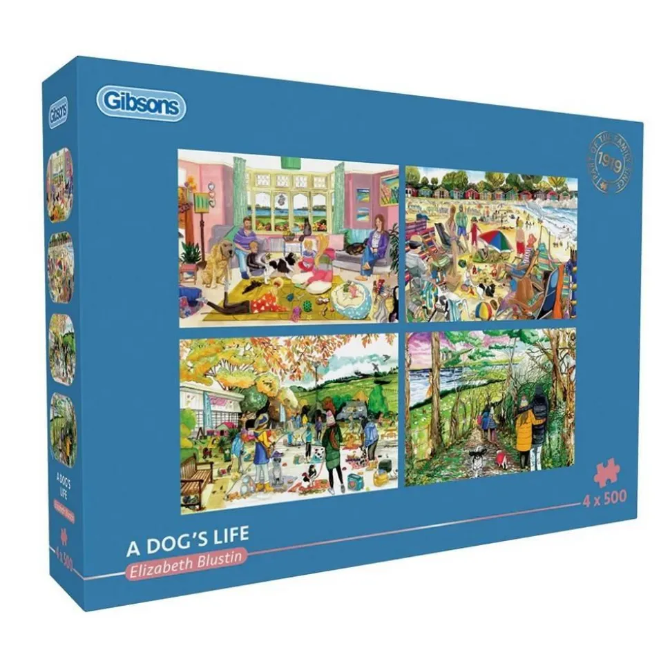Découvrez les puzzles 4 x 500 pièces, Une vie de chien de la marque Gibsons !