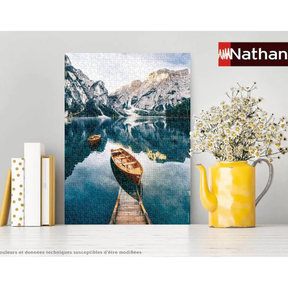Caractéristiques détaillées : Puzzle 500 pièces : Les barques du lac de Braies, Italie