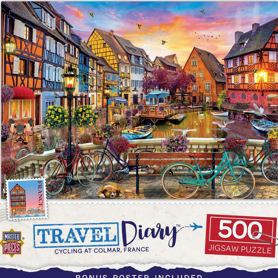Description du produit : Puzzle 550 pièces : Carnet de voyage – Colmar à vélo