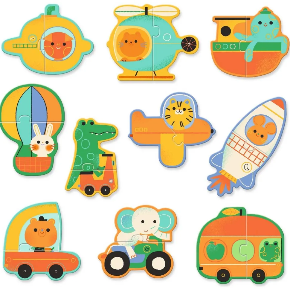 Puzzle duo Véhicules est un puzzle éducatif pour les tout-petits sur le thème des véhicules. L’enfant associe les 2 parties d’un véhicule conduit par un adorable petit animal. À partir de 2 ans.