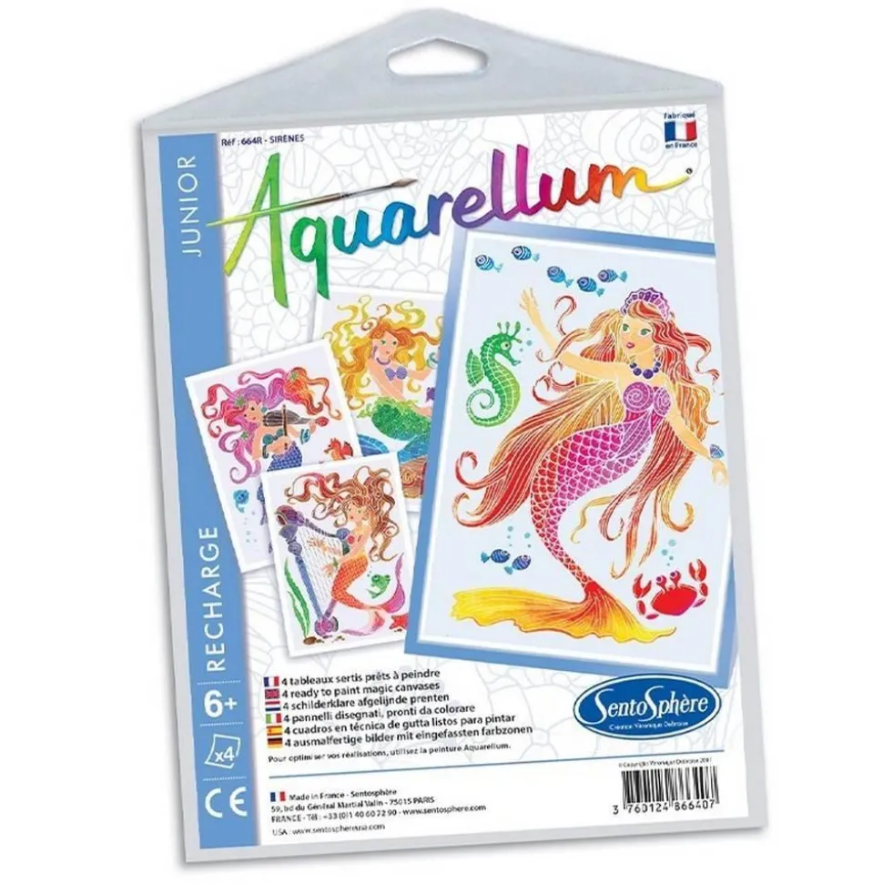 Recharge Aquarellum Junior – Sirènes Contenu : 4 planches prêtes à peindre.