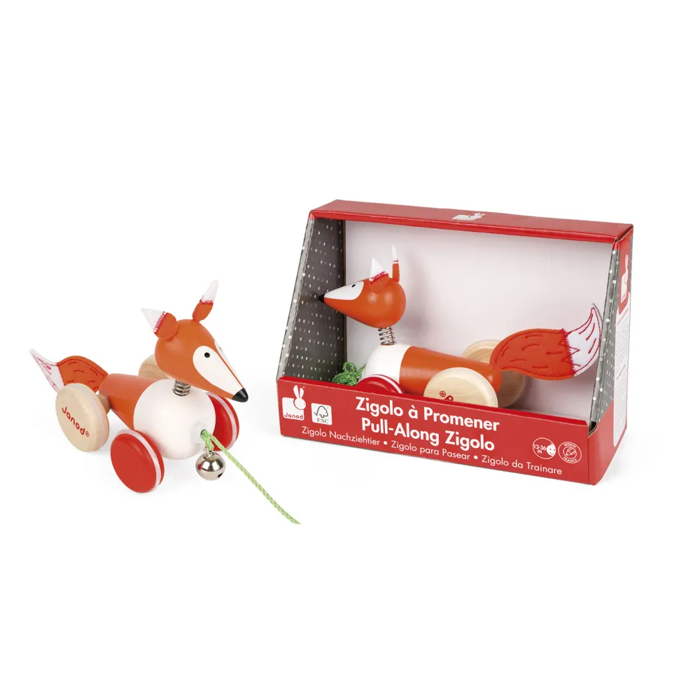 Ce joli jouet en bois ravira vos enfants qui s’amuseront à promener cet animal forestier ! Votre enfant prendra votre maison et votre jardin pour une grande forêt. Les roues en bois sont robustes et résisteront aux obstacles par lesquels vos enfants vont faire passer son animal préféré. Sa tête sur ressort bougera dans tous les sens et amusera vos enfants ! Une petite clochette est accrochée à la cordelette qui tire le renard. Vous ne pourrez donc pas le perdre et l’entendrez arriver de loin. Les proies pourront ainsi vite s’échapper et vivre paisiblement dans leur maison. Les couleurs vives et le design amusant de ce jouet attireront tous les enfants qui seront heureux de faire de ce renard leur compagnon de jeu et de promenade préféré. Contient :- 1 renard à tirer- 1 cordelette- 1 grelot