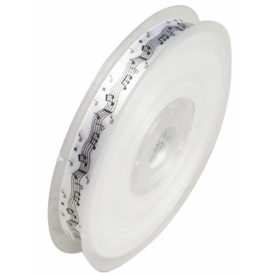 Ruban satin 25m imprimé Musique, en bobine de 25m
