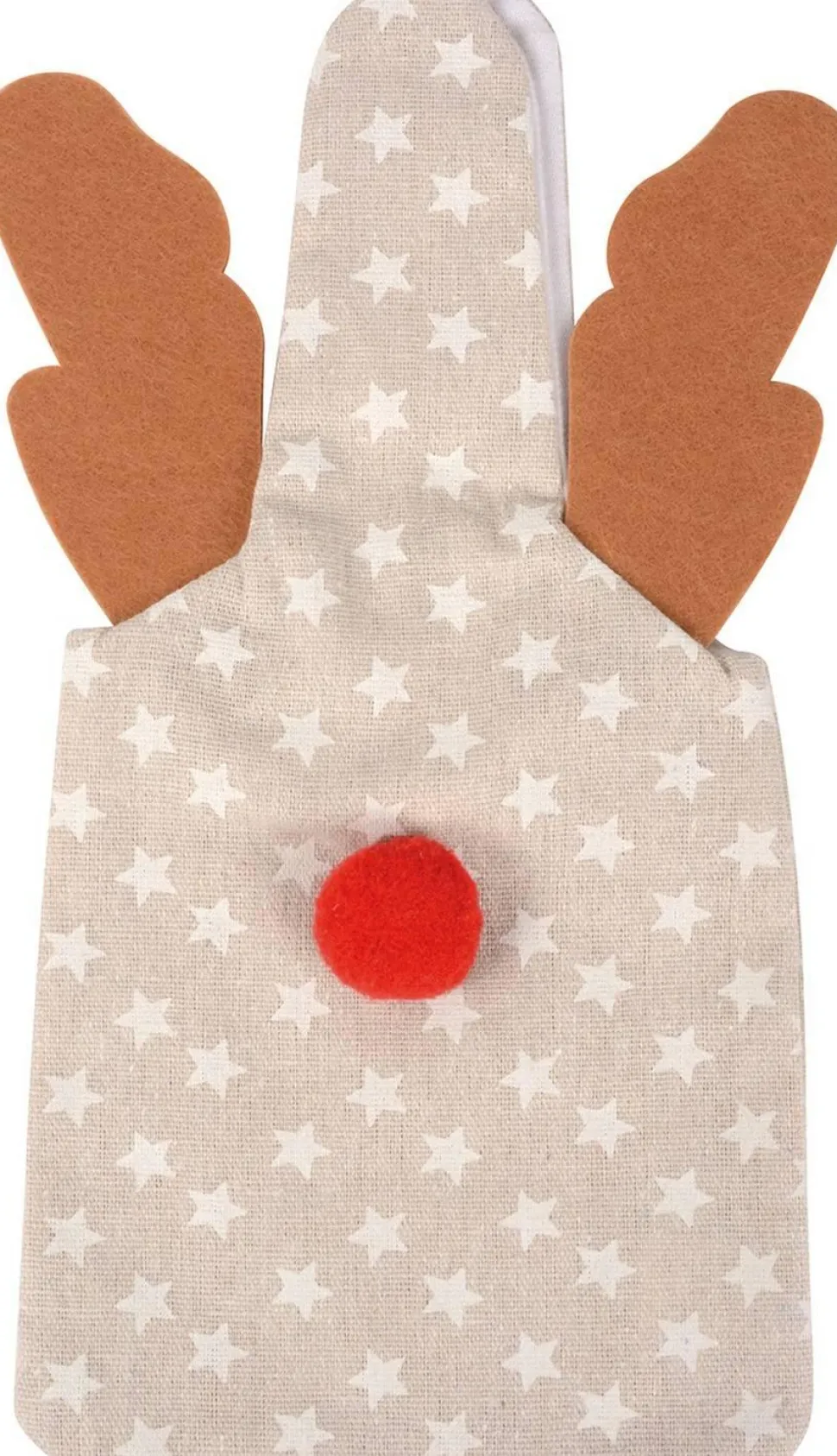 … Le Père Noël, le lutin et les cadeaux de Noël sont emballés en un rien de temps dans ce sac couleur naturelle orné d’étoiles blanches et de bois en feutre marron. Son joli nez rouge attire tous les regards. Les oreilles se nouent facilement pour fermer le sac. Livré vide.