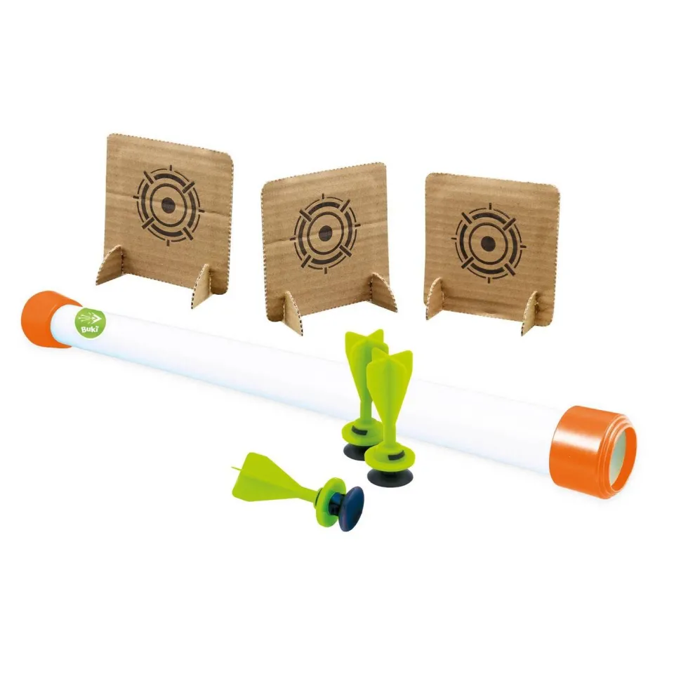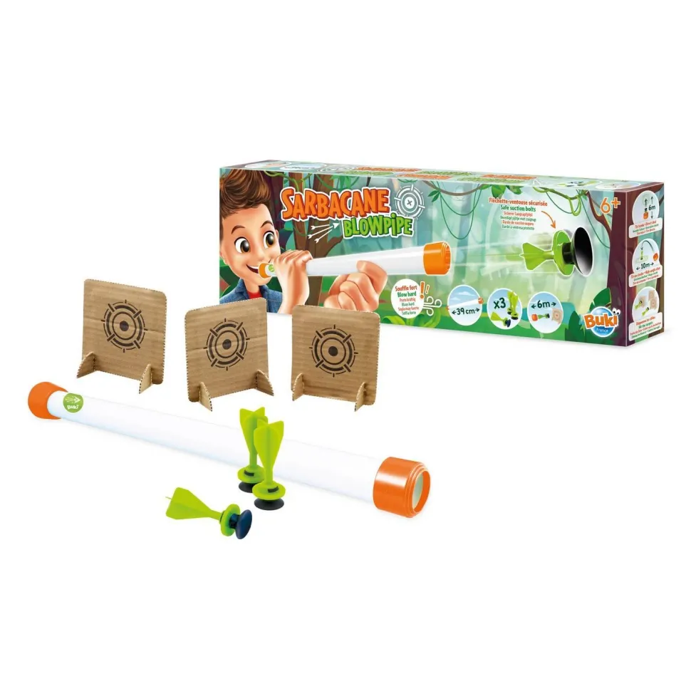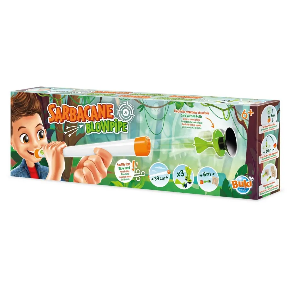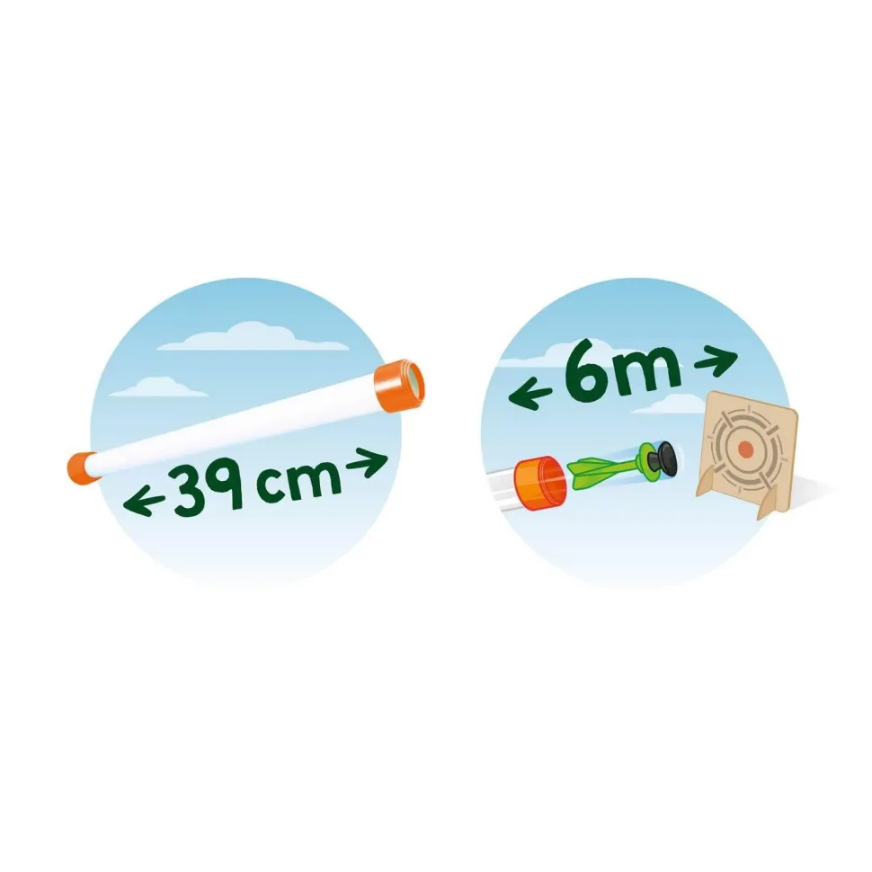Insère une fléchette et souffle fort dans la sarbacane pour dégommer les cibles en toute sécurité. Sa conception et ses fléchettes-ventouse permettent une utilisation sans risque.