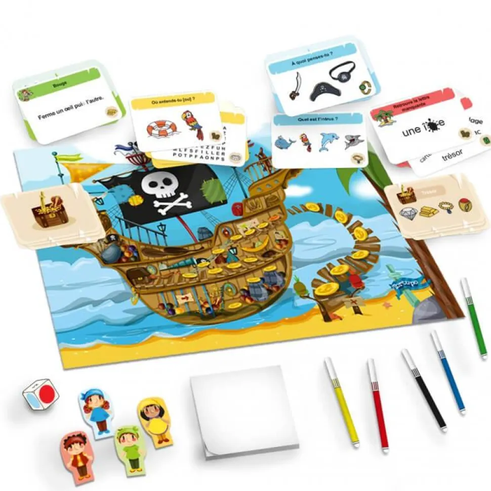 Sauve-toi moussaillon est un jeu de lecture et d’aventure pour les enfants à partir de 6 ans sur le thème des pirates.