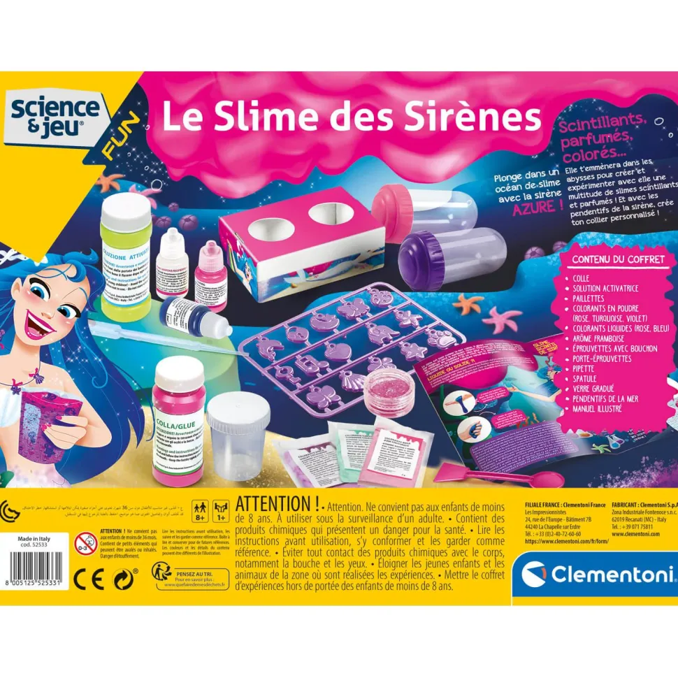 Coffret Science et jeu de la marque Clementoni : Le slime des sirènes.
