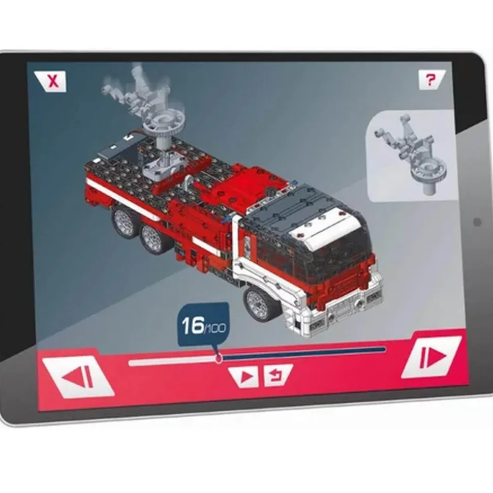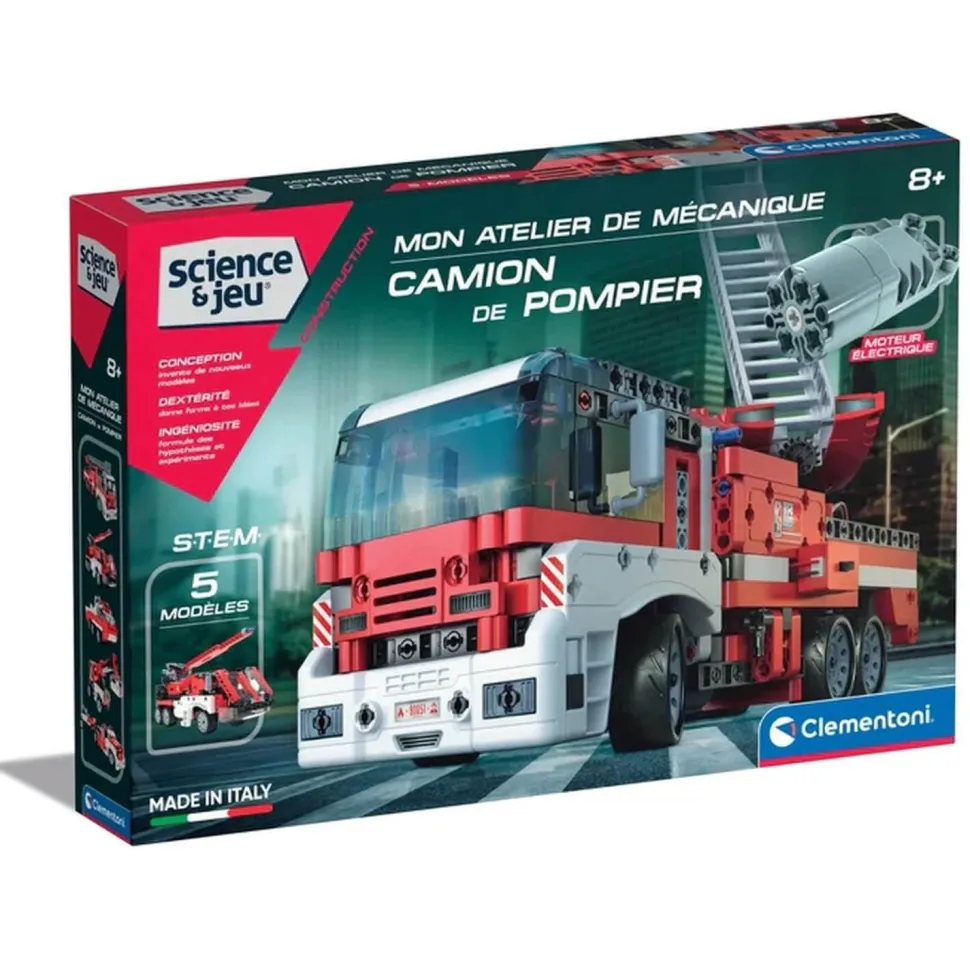 La gamme Science & Jeu de Clementoni vous propose le coffret Mon atelier de mécanique : Camion de pompier. Ce coffret de construction laisse place à votre imagination en construisant un camion de pompier motorisé et 4 autres modèles, vous permettant alors d’expérimenter et d’apprendre la mécanique et l’ingénierie.