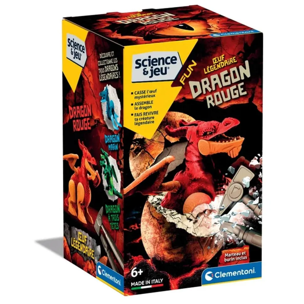 La gamme Science & Jeu de la marque Clementoni vous propose le coffret Œuf légendaire : Dragon Rouge, un coffret de fouille pour éclore un œuf de dragon !