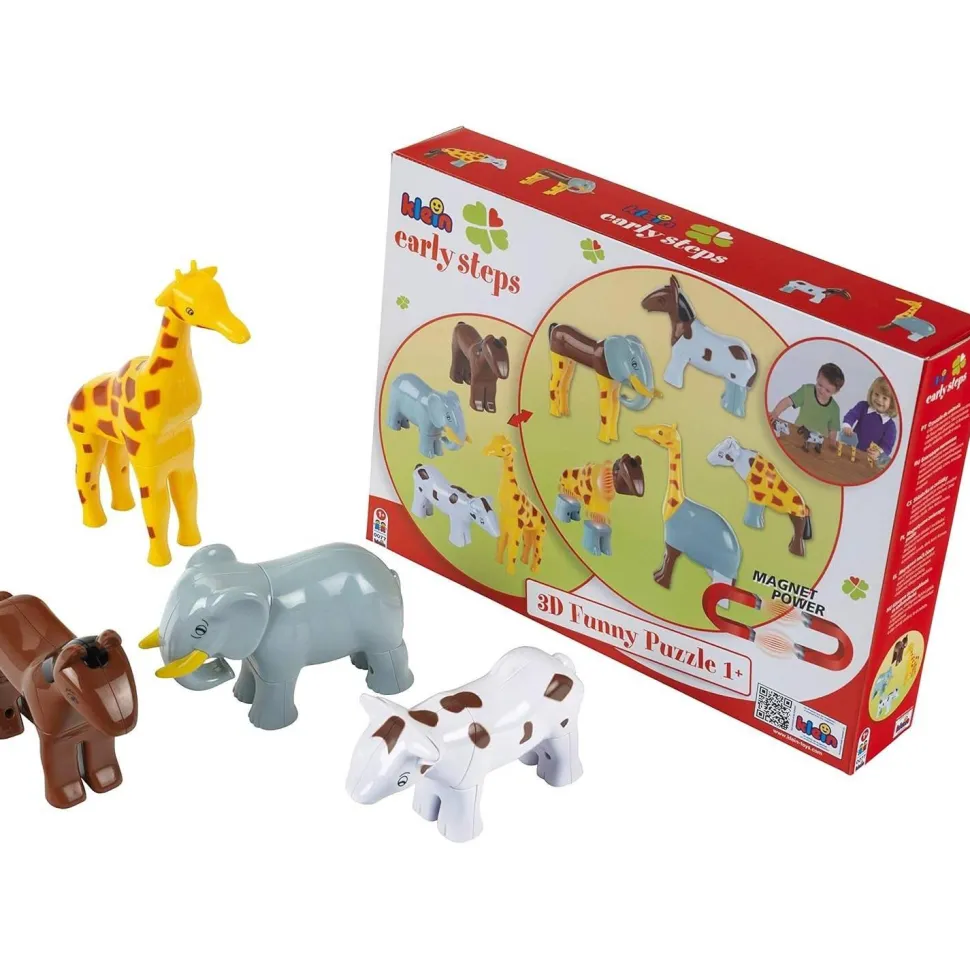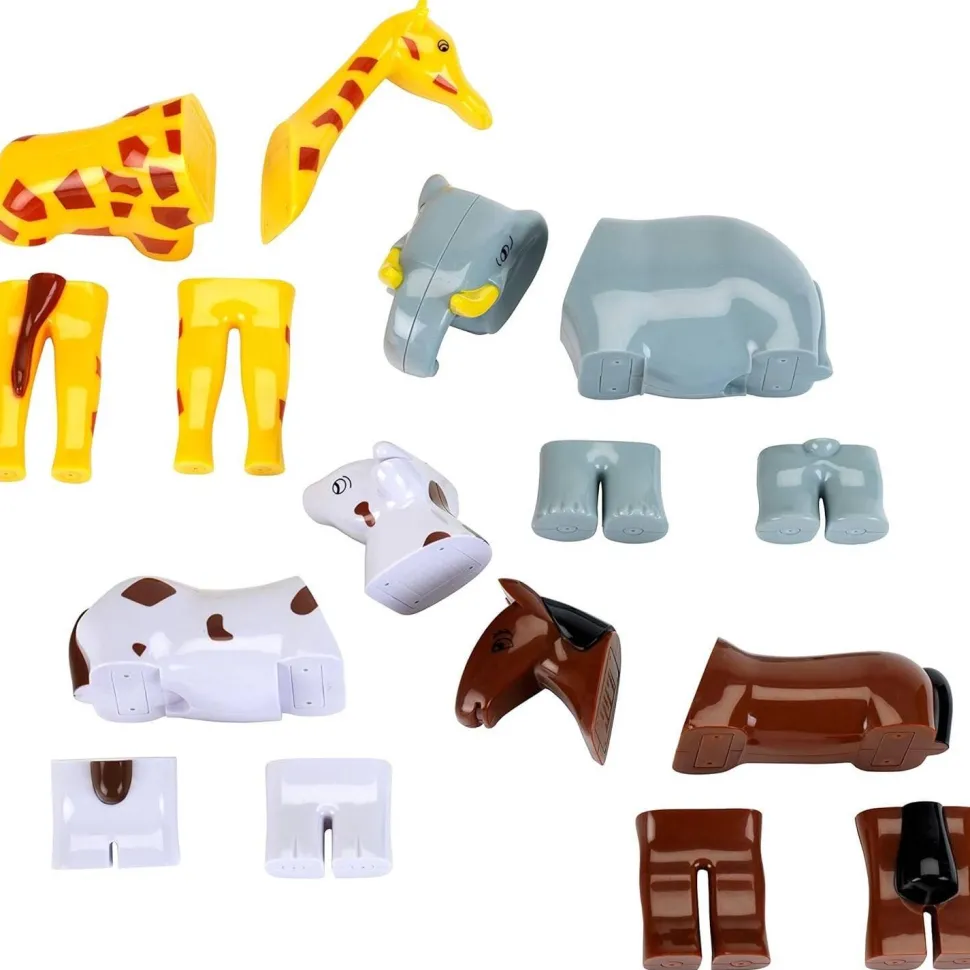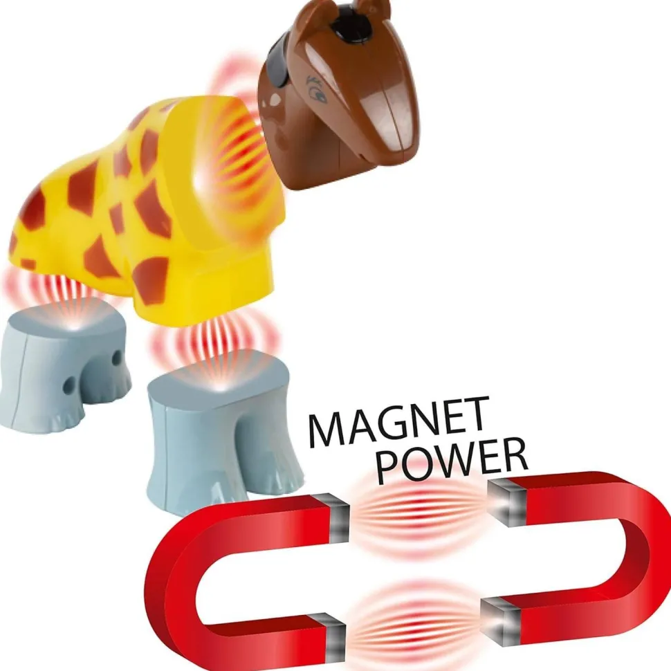 Inventez une multitude d’histoires et d’aventures avec ces quatre figurines/puzzles magnétiques en forme de d’animaux !Contenu : – 1 figurine vache- 1 figurine cheval- 1 figurine éléphant- 1 figurine girafe.Ces quatre figurines sont magiques : les différentes parties du corps de chaque animal s’emboîtent grâce à des aimants. Les plus jeunes enfants pourront ainsi reconstituer des animaux et imaginer des histoires ou encore reproduire ce qu’il a vu. L’enfant peut aussi créer de drôles d’animaux ! En effet, les parties du corps sont interchangeables : créez un éléphant à la tête de girafe et aux pattes de vache ou une vache avec le corps d’une girafe et aux pattes d’éléphants… De nombreuses possibilités de jeu. Ces animaux sont un mix du puzzle et d’une figurine puisque les pièces en 3D s’emboîtent et permettent ainsi à l’enfant de jouer avec une prise en main facile.Ce produit aidera l’enfant à comprendre le fonctionnement des aimants. Le jouet stimulera sa créativité, son imagination et sa dextérité.Dimensions du produit : 39 x 29 x 7.5 cm.