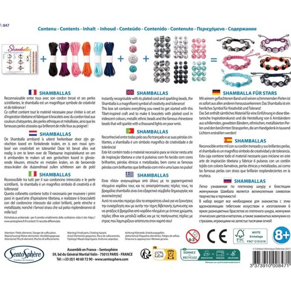 Révéler sa personnalité avec des bracelets uniques et stylés, c’est possible ! Décidément, le Shamballa n’est pas un bracelet comme les autres ! Reconnaissable entre tous avec son cordon tressé et ses perles scintillantes, c’est un sympathique symbole de créativité et de tolérance. Contenu du coffret : – 5 couleurs de cordon de satin – 5 perles strassées – 21 perles de couleur et 18 perles métalliques – 1 mode d’emploi Dimensions de la boîte : 25 x 20 x 4 cm.Ce coffret contient tout le matériel nécessaire pour s’initier à cet art d’inspiration tibétaine et fabriquer 5 bracelets avec du cordon aux couleurs chatoyantes, des perles nacrées ou métalliques, sans oublier les fameuses perles strassées qui brilleront de mille faux au poignet ! Ce jouet sera parfait pour occuper les enfants mais surtout pour développer leur créativité. Ils seront heureux de pouvoir réaliser leurs bracelets avec les couleurs et les perles qui leur plaisent.1 à 3 h d’activité.