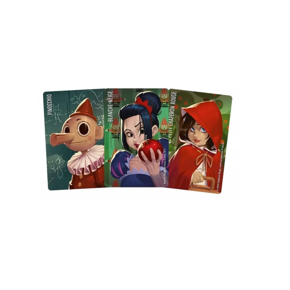 Votre but est de faire deviner aux autres joueurs un personnage secret (parmi les 12 au centre de la table). Pour cela d’autres cartes de votre main vous serviront d’indices. L’idée étant de pointer sans un mot des similitudes ou des différences entre le personnage indice et le personnage secret (détails physiques, émotion, métier, idées, caractère…). Par exemple pour faire deviner le petit Chaperon Rouge on pourrait utiliser Alice comme carte indice de similitude (petite fille, yeux bleus etc.).