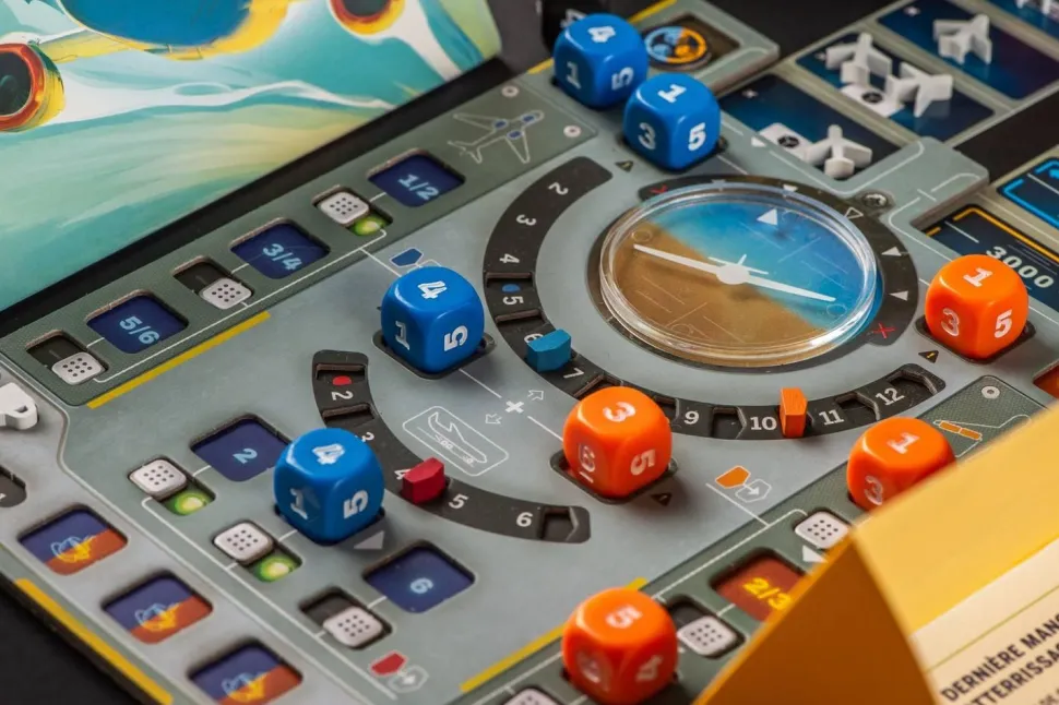 Tour après tour, il faudra placer stratégiquement ses dés sur le tableau de bord pour tenter de compléter la procédure d’atterrisage.
