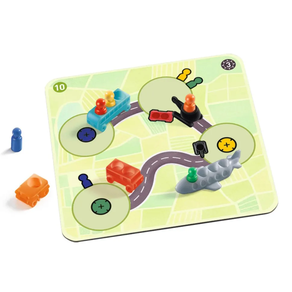 Un jeu de logique de la marque Djeco. L’effervescence du départ en vacances ! Emmenez chaque voyageur à destination en utilisant les véhicules… toujours au complet.