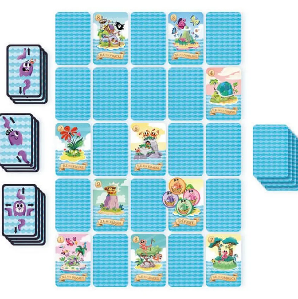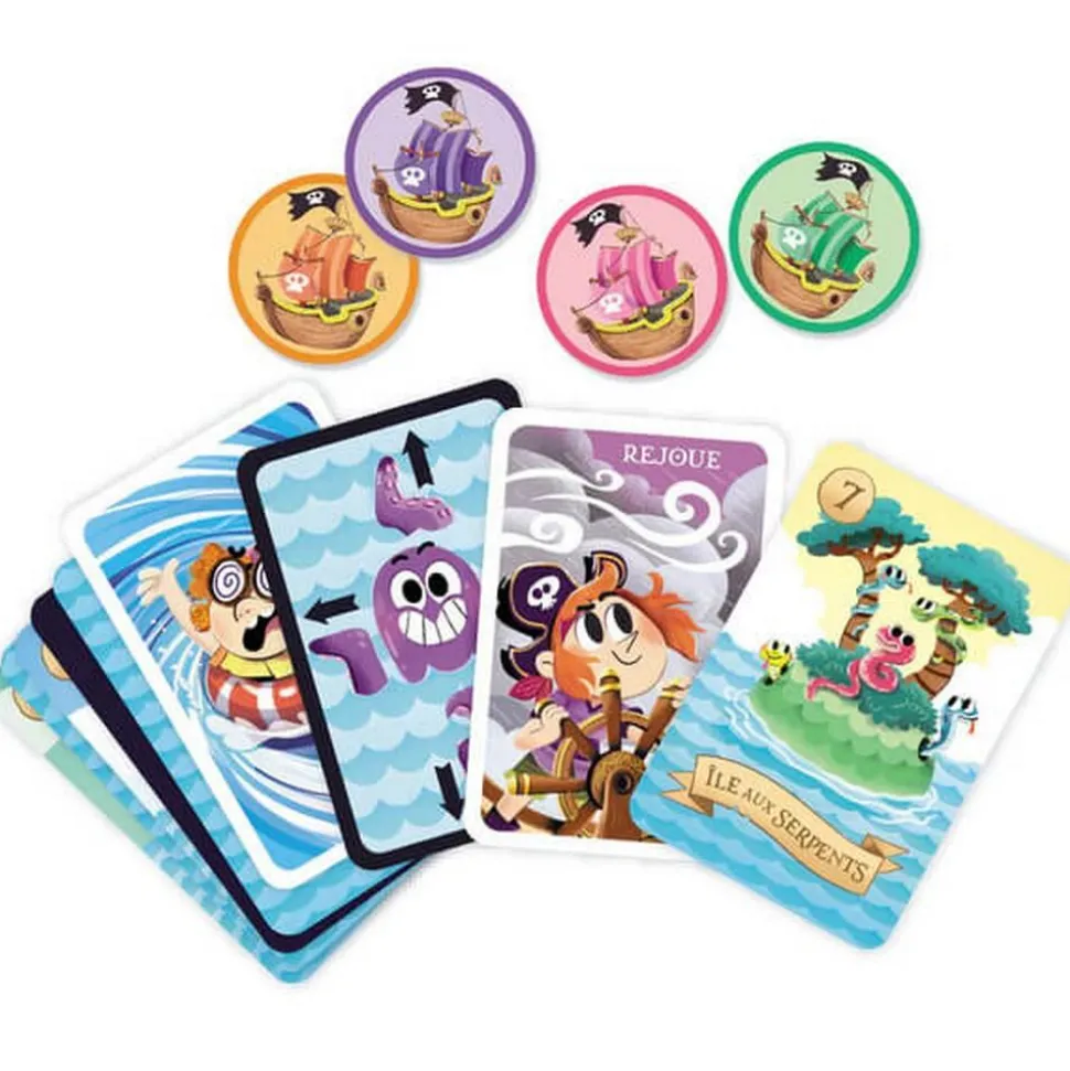 A L’ABORDAGE SPEED PIRATES ! À bord de ton bateau pirate, suis la direction indiquée par le Poulpe, affronte la tempête ou le calme plat. Le gagnant de la course est celui qui atteint, dans l’ordre, plus d’îles que les autres joueurs. UN JEU D’ORIENTATION ET DE COURSE où il faut choisir la bonne direction et les bonnes îles pour remporter le plus de pièces cachées ! COMMENT JOUER ? Place les cartes de façon à avoir la mer et les îles et choisis la direction que le Poulpe t’indique avec ton bateau pirate afin de découvrir le plus d’îles possible. Attention, dans la mer les vagues peuvent te pousser rapidement vers une autre île mais la tempête peut faire rage et couler momentanément ton bateau. DES RÈGLES SIMPLES à comprendre, un jeu rapide à mettre en place et des parties courtes, tout est réuni pour passer de bons moments en famille ! DE MAGNIFIQUES ILLUSTRATIONS pour faire de toi un vrai pirate à la recherche des plus grands trésors ! Un thème plébiscité par les enfants !