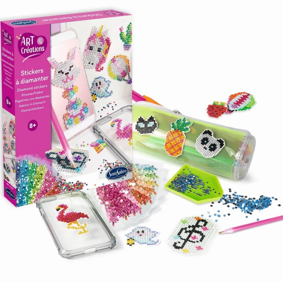 Avec ce coffret créatif Stickers à diamanter de la gamme Art & Créations de Sentosphère, créer de magnifiques stickers scintillants devient un jeu d’enfant !