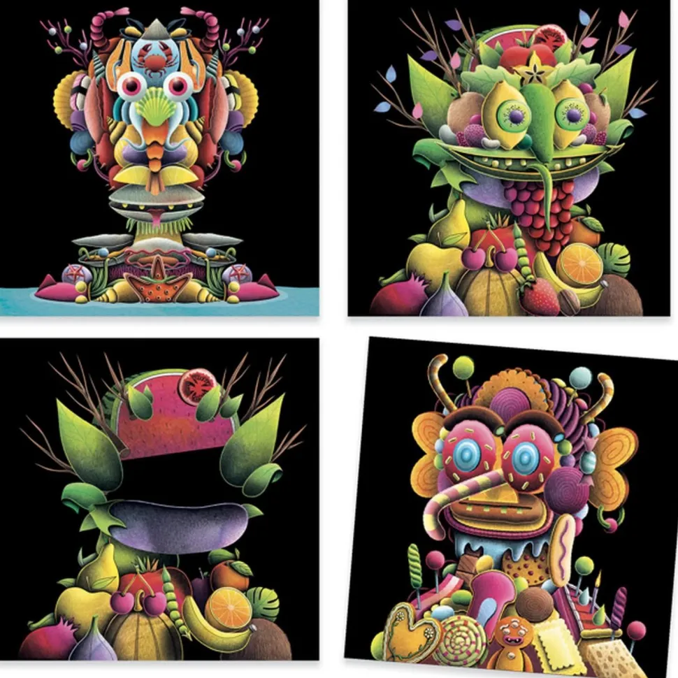 Loisir créatif et ludique, cette activité de collage propose 4 tableaux à compléter, inspirés du style de Guiseppe Arcimboldo, grand maître du maniérisme.