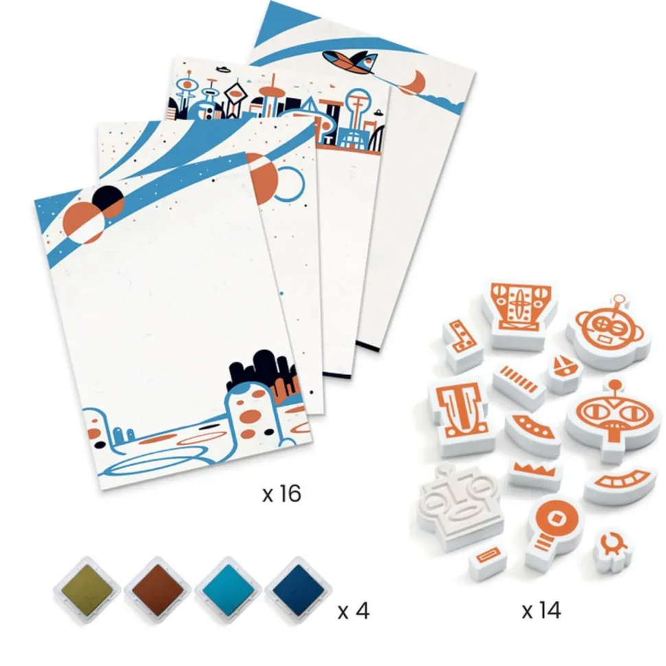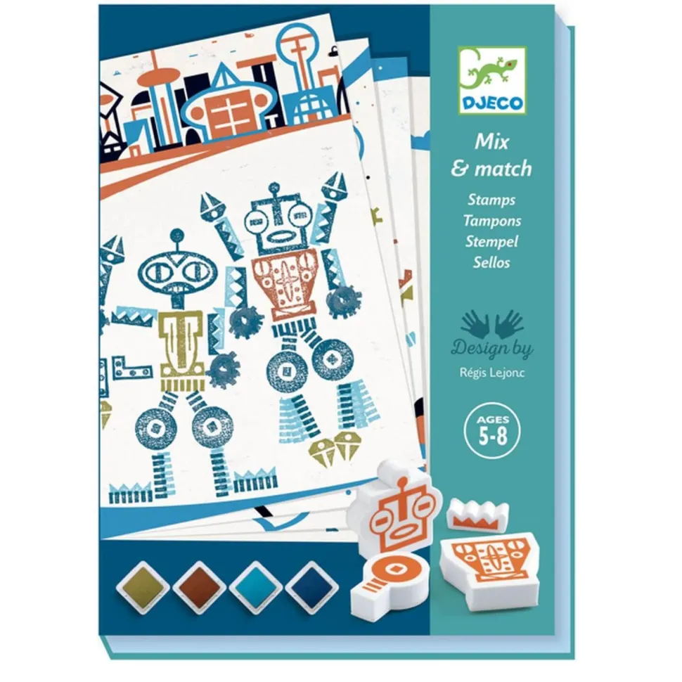 Découvrez les tampons Mix and Match de Djeco dans un thème alliant robots et aliens !