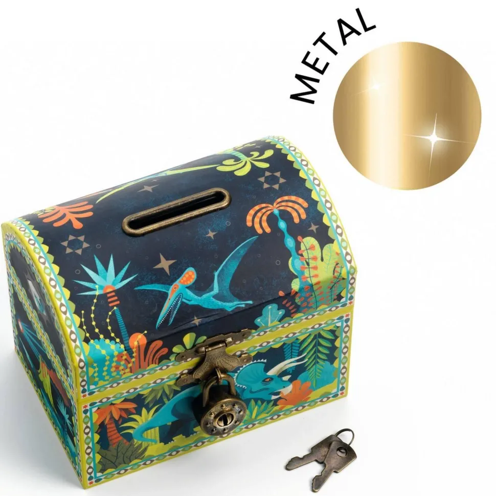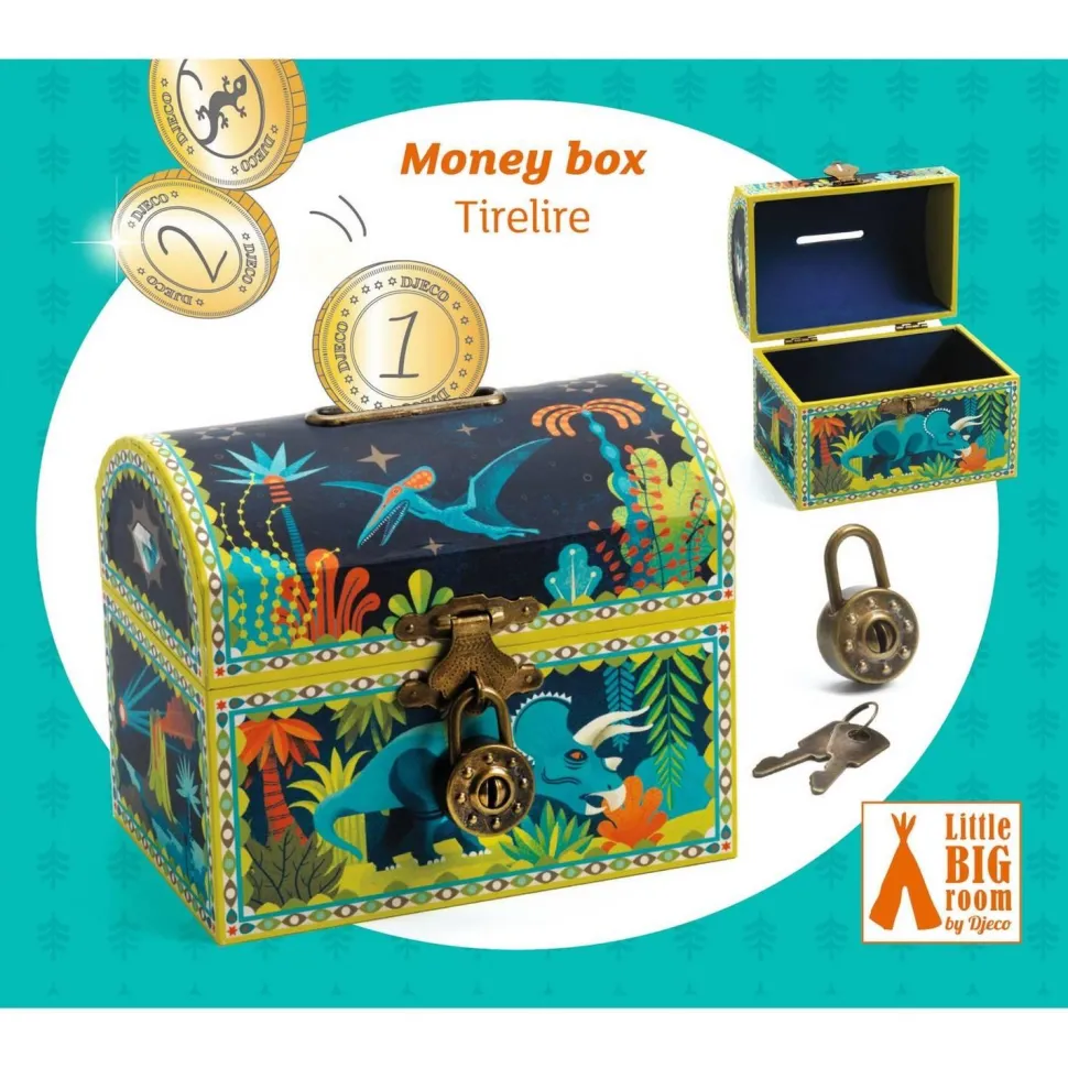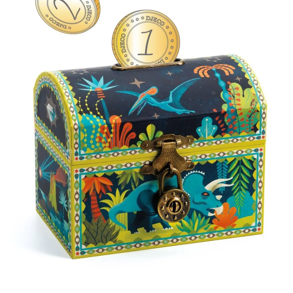 Découvrez cette superbe tirelire qui peut aussi servir de coffre à trésor. Un joli objet de décoration, avec ses illustrations de dinosaures, qui trouvera sa place dans la chambre. Fermée d’un cadenas, la tirelire est fournie avec 2 clés pour pouvoir récupérer ses économies.
