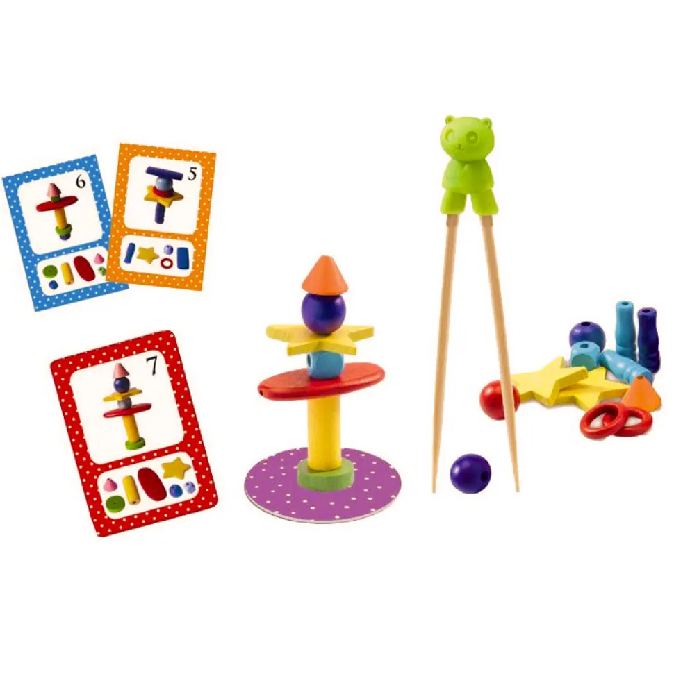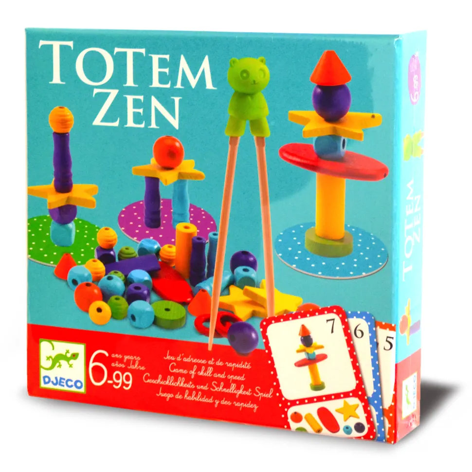Un jeu de société qui n’a de zen que le nom ! Pour espérer gagner la partie, vous allez devoir faire preuve de rapidité, d’adresse, de concentration et d’un solide sens de l’observation. Rien que ça ! Contenu de la boîte : – 4 baguettes en bois- 26 cartes représentant des totems à construire- 64 pièces en bois de formes et de couleurs différentesPiochez une carte et observez bien les différentes pièces nécessaires pour construire le totem représenté. Puis précipitez-vous pour attrapez les bons éléments avec les baguettes et commencez à bâtir votre tour, en espérant être plus rapide et plus adroit que votre voisin ! le premier qui a terminé remporte le tour ! Nombre de joueurs 2 à 4.Durée moyenne d’une partie : 15 minutes.Dimensions de la boîte : 21.5 x 21.5 x 3 cm.