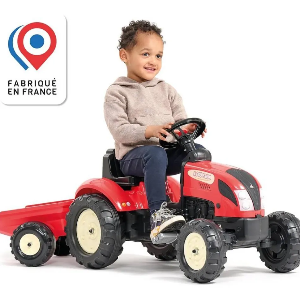 Contenu : Un Tracteur à pédales Kiddy Farm avec remorque, rouge