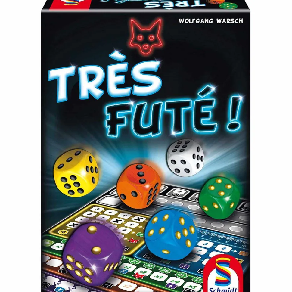 Très Futé est un jeu de dés qui demande stratégie, bon sens et attention. Vous jouez contre d’autres personnes au tour par tour. Gare aux moins futés qui se laisseront distraire ! Vous pourriez y laisser votre victoire.Il s’agit ici de choisir les dés ingénieusement, car lorsqu’ils sont utilisés habilement, ils peuvent entraîner d’astucieuses réactions en chaîne.Le résultat du dé choisi doit toujours être noté dans la zone de couleur correspondante et rapporte des points.Les joueurs ne doivent cependant pas ignorer les dés qu’ils laissent inutilisés. Car chaque dé affichant un résultat inférieur au dé choisi sera présenté aux adversaires sur un plateau d’argent… Dans ce passionnant jeu de dés, personne ne doit attendre longtemps. Car tous les joueurs sont toujours impliqués.Vous avez l’occasion d’inviter trois autres personnes à jouer avec vous pour une partie de 30 minutes. Les moins de 8 ans devront malheureusement passer leur tour pour ce jeu.Contenu du jeu : – 1 Bloc de score- 6 Dés de couleurs- 4 Feutres- Règle du jeu