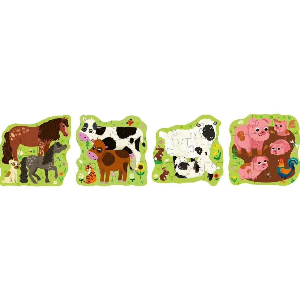 4 puzzles formes de 4,6,8,10 pièces de puzzle extra-épaisses, 4 posters, 1 livret d’exploration