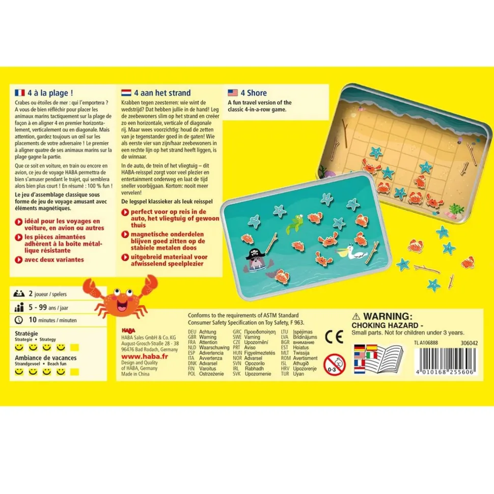 Découvrez le jeu de voyage 4 à la plage de la marque Haba.