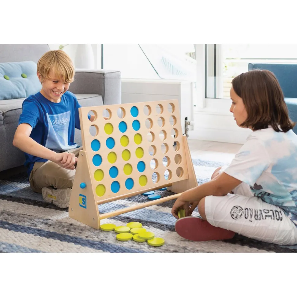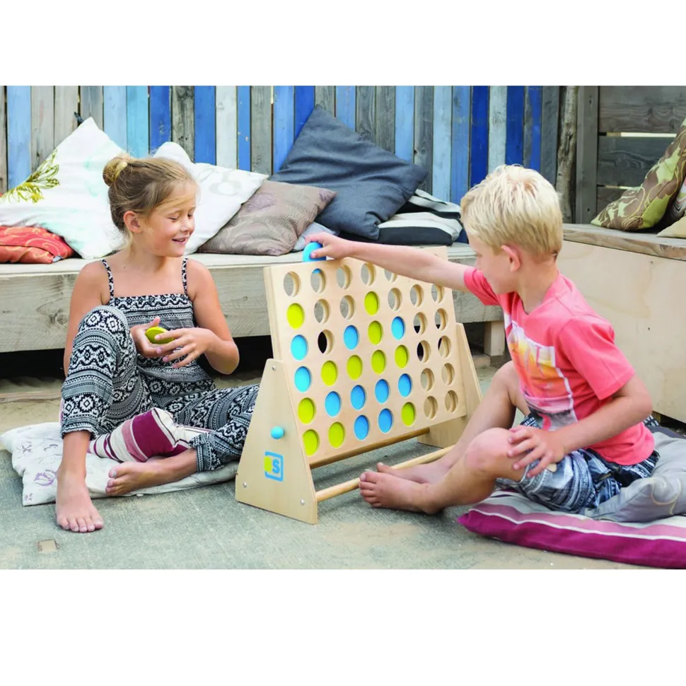 Redécouvrez le traditionnel jeu de stratégie Puissance 4 dans une version Deluxe en bois, grand format pour jouer en intérieur comme en extérieur.Contenu :- 1 cadre avec socle à assembler- 35 jetons en bois (rouge et noir)De bonne qualité avec sa structure en bois, ce magnifique jeu reprend les règles classiques de ce jeu de stratégie pour 2 joueurs.Chaque joueur commence par choisir la couleur de ces pions, soit rouge soit noir. Pour jouer, il faudra alors, à tour de rôle, insérer un pion de sa couleur dans la grille. En jouant avec astuce, vous devez réaliser un alignement de quatre pions de votre couleur, sachant que l’alignement peut être aussi bien horizontal, vertical que diagonal. Si vous réussissez à contrer votre adversaire et à réaliser un alignement de couleur, c’est gagné ! Un jeu fantastique que vous voudrez sans cesse recommencer !Dimensions du jeu : 57 x 39 cm.