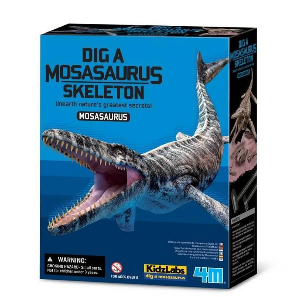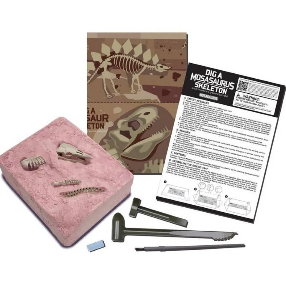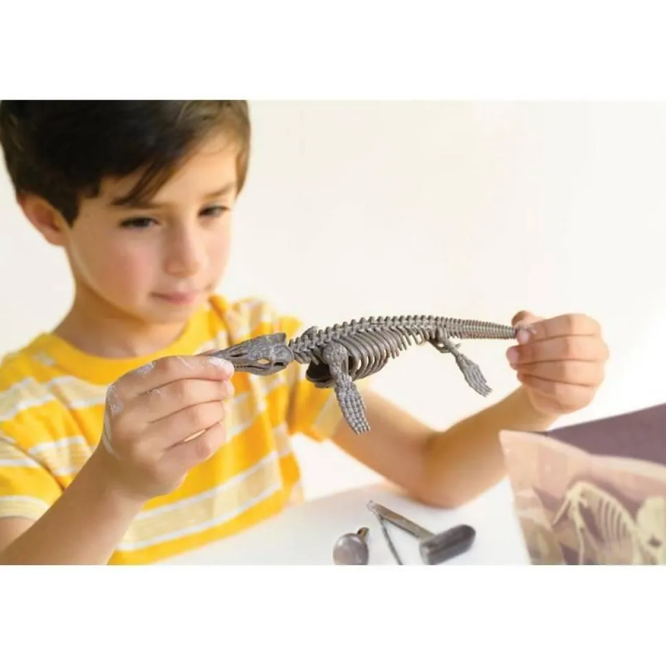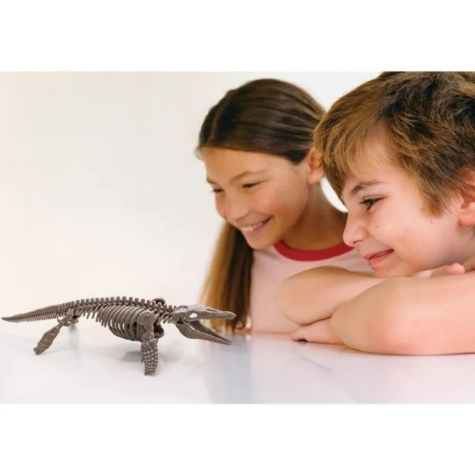 Plonge dans l’univers fascinant de la paléontologie ! Grâce à ce kit scientifique, les enfants peuvent creuser dans un bloc de plâtre pour mettre au jour les ossements d’un Mosasaurus. En utilisant les outils fournis, ils vivront l’expérience d’une véritable fouille archéologique, patiente et passionnante. Une fois le squelette entièrement déterré, il suffit de l’assembler pour obtenir une impressionnante reconstitution de Mosasaurus. Un jeu éducatif captivant qui développe la précision et la curiosité scientifique. Instructions illustrées incluses.