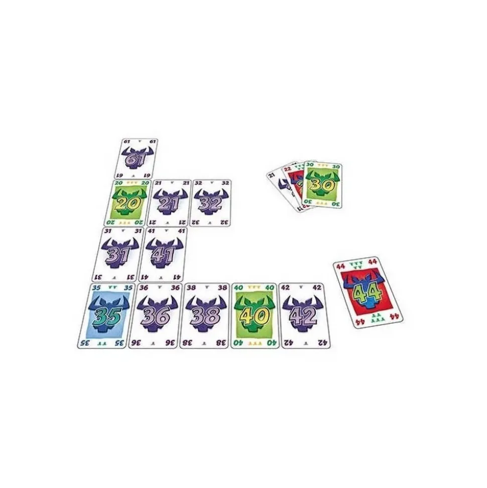 6 Qui prend Un jeu enormeuuh….ment drôle, interdit aux boeufs ! Ces drôles de cartes valent de 1 à 7 « têtes de boeufs » chacune. Votre but : en récolter le moins possible. En début de manche vous recevez 10 cartes. A chaque tour les joueurs choisissent une carte et la révèlent à tous en même temps : ces cartes sont ajoutées à l’une des 4 séries qui se forment sur la table. Celui qui doit jouer la sixième carte d’une série « récolte » les 5 premières… et toutes leurs têtes de boeufs ! Quand les 10 cartes sont jouées, chacun compte ses boeufs et les additionne à son total précédent. Après plusieurs manches, le plus petit troupeau gagnera la partie. Contenu : 104 cartes, règle du jeu.Durée de la partie : 45 minutes. Dimensions de la boîte : 14.5 x 10.7 x 2 cm. Nombre de joueurs : 2 à 10.