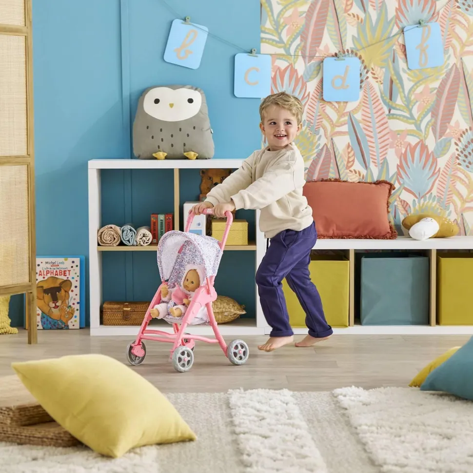La Poussette Florale est idéale pour gagner en assurance lors du challenge des « premiers pas » et partir en promenade avec son petit poupon de 30cm.