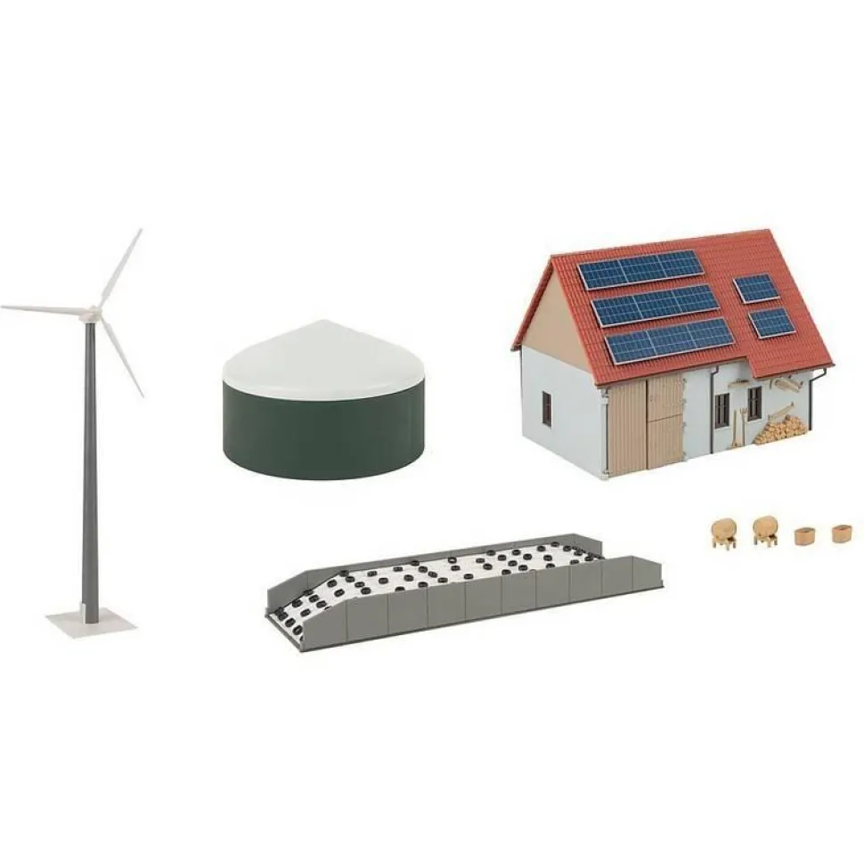 Bienvenue dans le cadre idyllique de la vie rurale !Ce set comprend une grange rustique avec des outils traditionnels et des panneaux solaires modernes sur le toit, ainsi qu’un silo spacieux et un réservoir de gaz. Une élégante éolienne trône au-dessus du décor et fournit une énergie durable. Ce kit de modélisme allie l’agriculture traditionnelle à la force avant-gardiste de la technologie moderne.