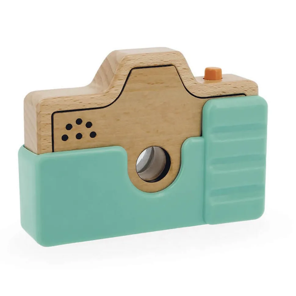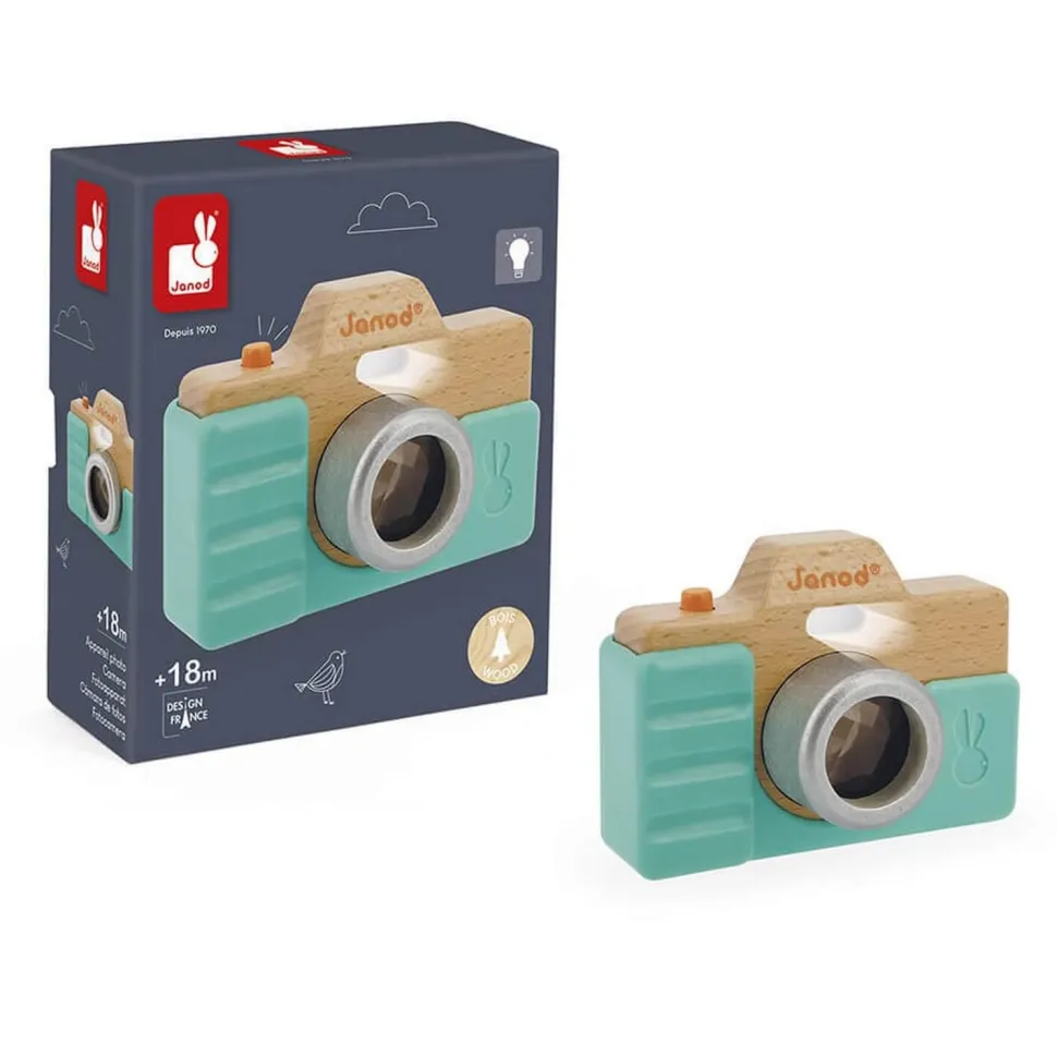 Découvrez ce superbe appareil photo sonore en bois de la marque Janod.
