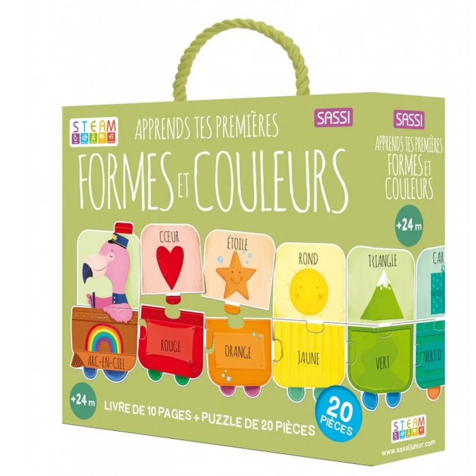 Un livre de 10 pages et un puzzle de 20 pièces géantes pour créer un petit train et apprendre les premières formes et les couleurs.