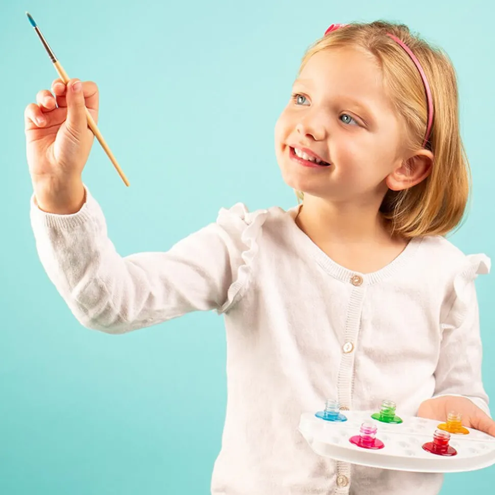 Contenu : 3 tableaux sertis 32,5 x 25 cm, 9 flacons d’encres lavables et non toxiques, 1 pinceau aquarelle de très grande qualité, 1 palette pour mélanger les encres, 1 pipette pour doser les encres, 1 notice.