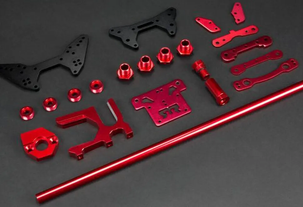 – Amortisseurs en aluminium anodisé, réglables et remplis d’huile