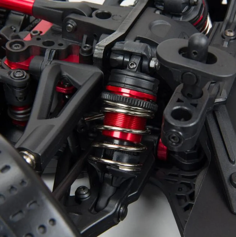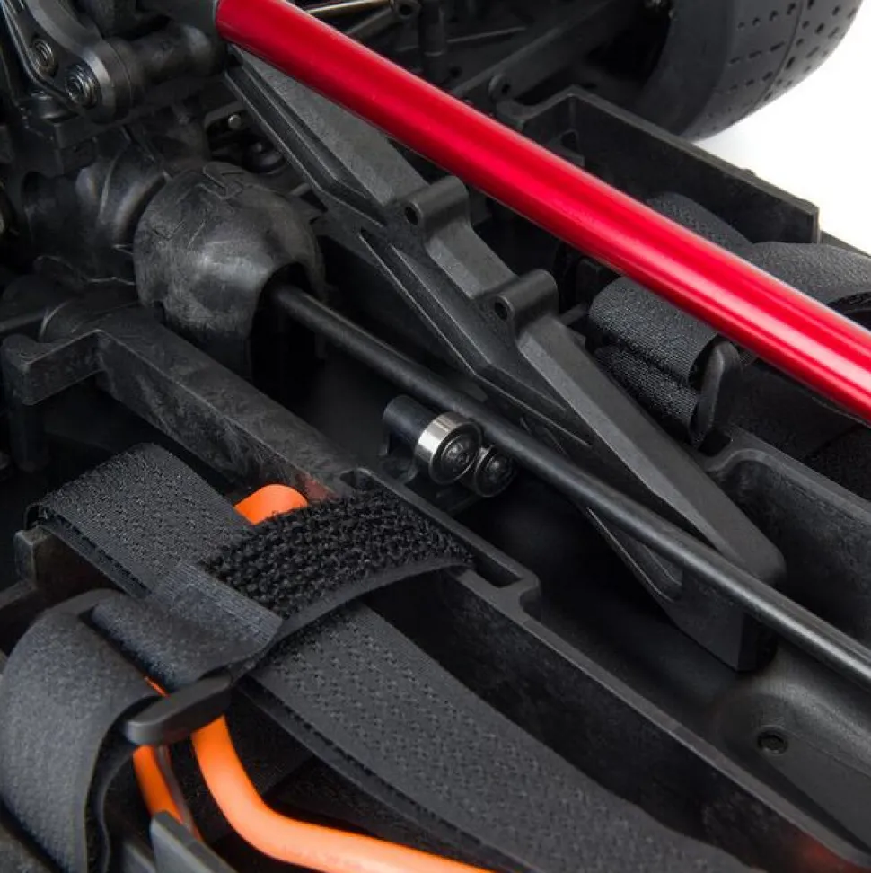 Sous ce look Street Bash épuré se cache un châssis qui prouve au monde entier, une fois de plus, qu’ARRMA® construit les bashers les plus durables. Le châssis en aluminium anodisé 6061-T6 abrite un groupe motopropulseur robuste avec des arbres de transmission en acier, des différentiels entièrement métalliques et des internes de boîte de vitesses. Sa robustesse est renforcée par un renfort central du châssis. Les amortisseurs réglables, remplis d’huile et anodisés, sont montés sur de solides tours d’amortisseurs en aluminium anodisé noir. Poussez l’accélérateur au maximum – le FELONY™ 6S BLX Street Bash RTR est fait pour le supporter.