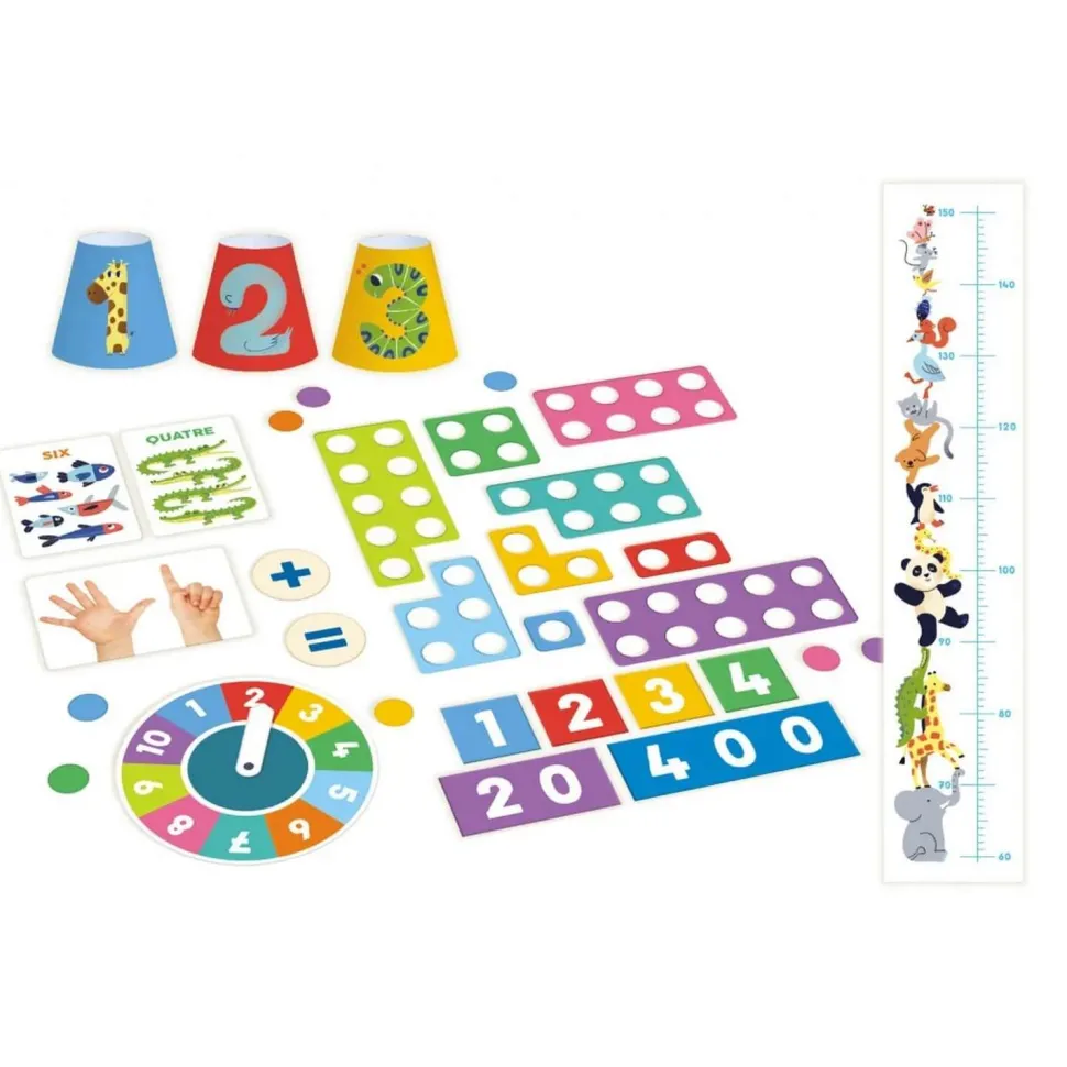 Ce grand coffret propose un matériel original pour accompagner les découvertes de l’enfant autour des nombres et du calcul. Des activités variées et un guide très complet abordent les quantités, l’addition, la soustraction. Par le jeu, le parent accompagne son enfant vers l’autonomie, à son rythme.