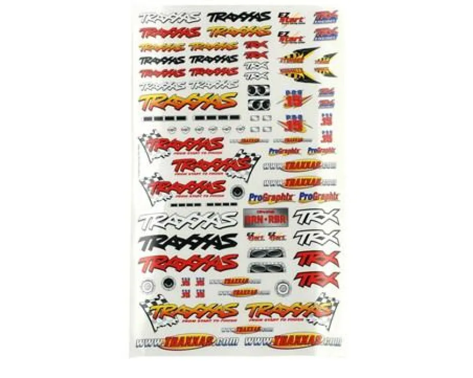 La feuille officielle de décalcomanies Team Traxxas Racing a été révisée et comprend désormais les moteurs EZ-Start®, Stinger™, ProGraphix®, TRX® et les logos www.Traxxas.com. Parfait pour ajouter la » touche finale » à votre carrosserie peinte Traxxas ProGraphix, ou à vos motifs de peinture personnels.