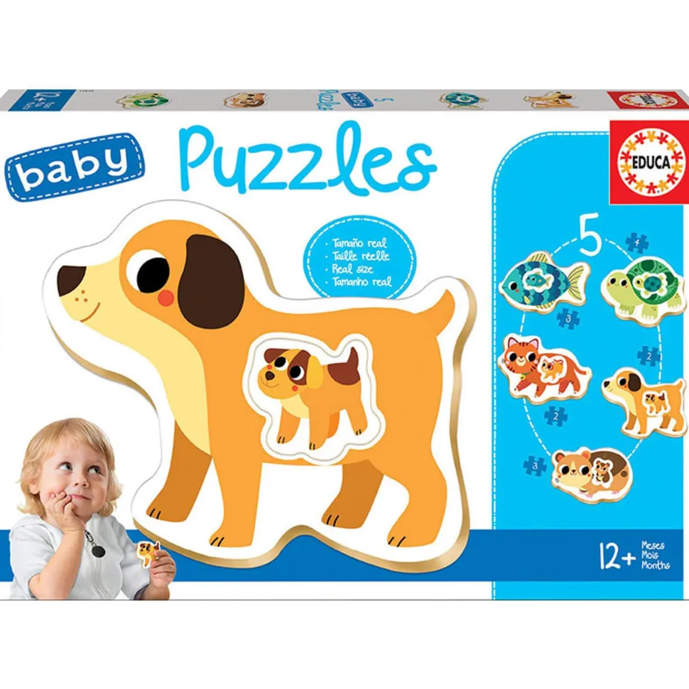 5 puzzles progressifs de 2 à 4 pièces.Composés de grandes pièces, épaisses et faciles à manipuler, ils développent l’attention, la psychomotricité, la curiosité et l’imagination des plus petits.